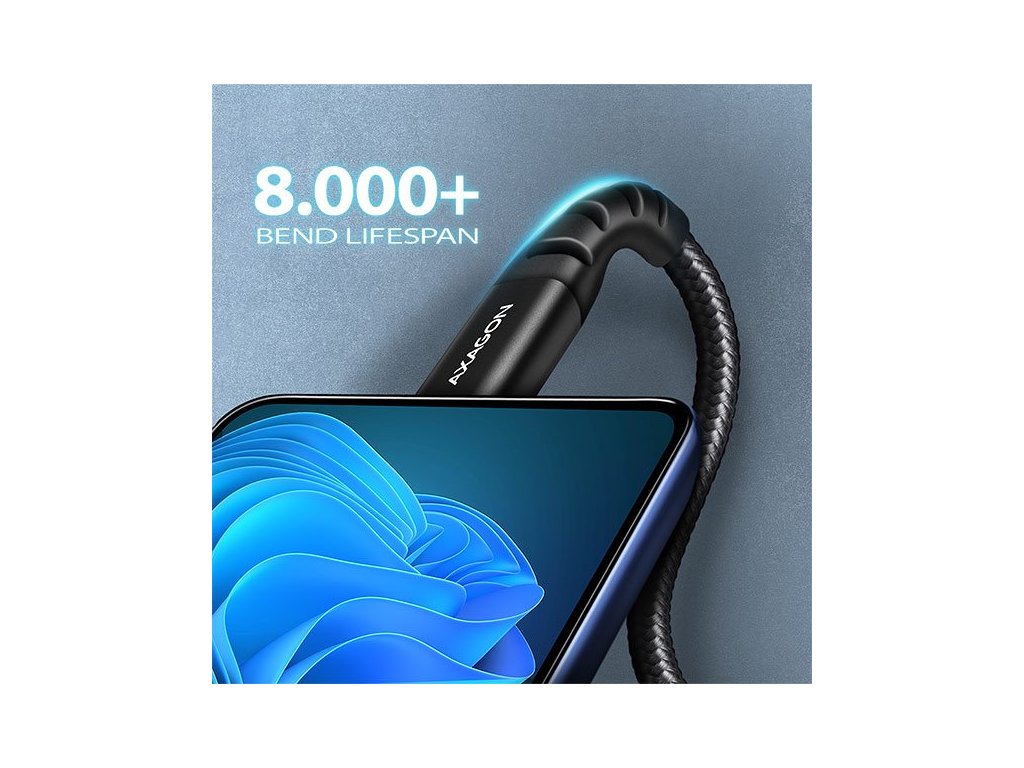 Odolný datový a napájecí kabel s prodlouženou životností je opatřen kovovými koncovkami, konektory s poniklovaným povrchem a pozlacenými kontakty. Vodiče kabelu jsou vyrobené z pocínované bezkyslíkaté mědi. Kvalitní izolace kabelu, vyrobená z flexibilního TPE, zaručuje maximální odolnost, ale zachovává i dostatečnou ohebnost. Konečnou pevnost kabelu dodává nylonový oplet. Bonusem je praktická páska pro snadné sbalení kabelu.