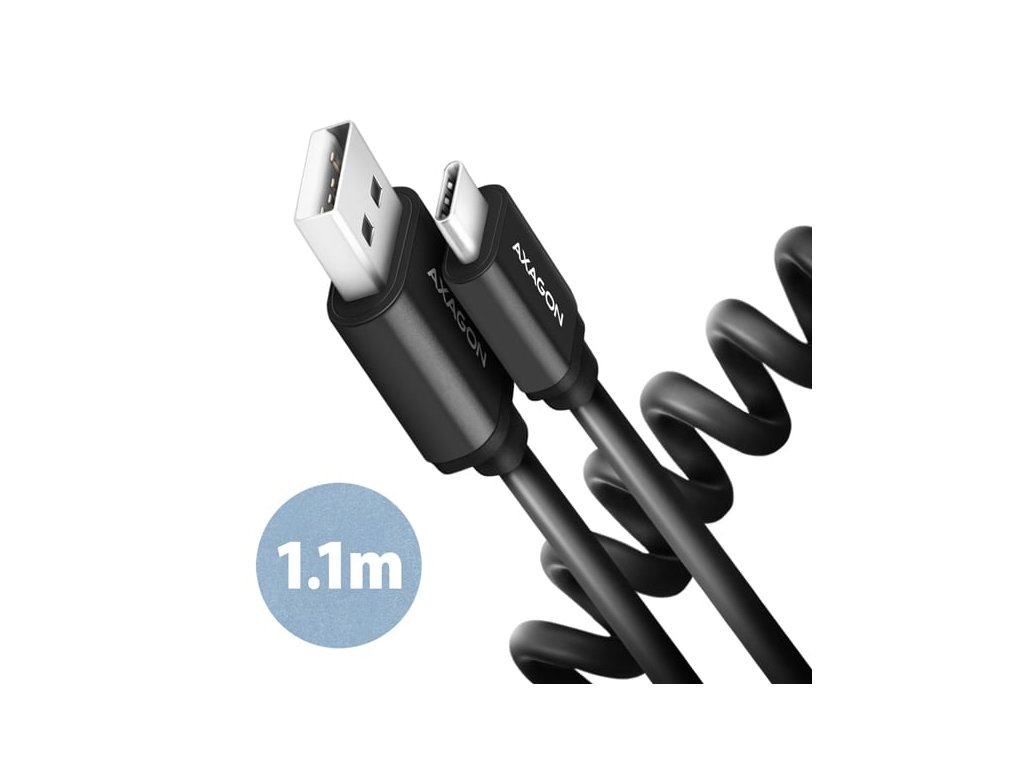 AXAGON BUCM-AM20TB, TWISTER kabel USB-C <-> USB-A, 1.1m, USB 2.0, 3A, ALU, tpe, černý