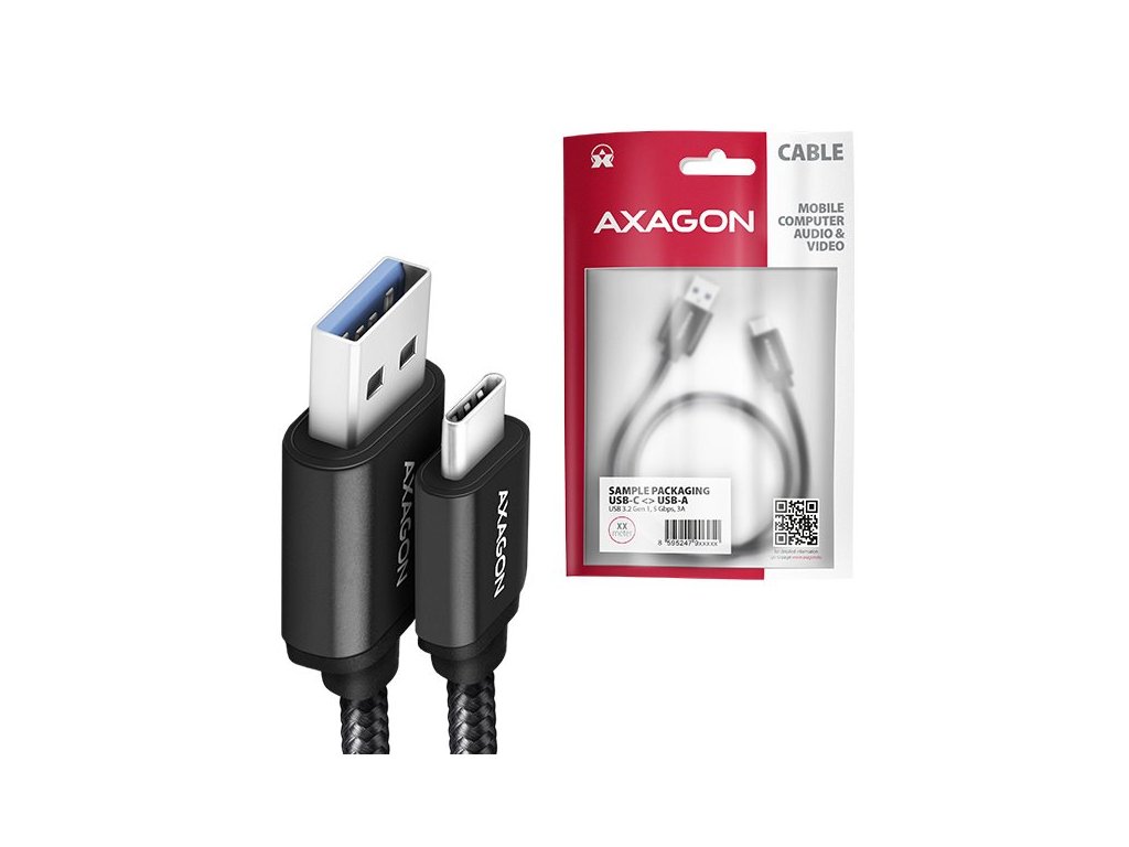 Prémiový propojovací USB-C <-> USB-A datový a nabíjecí AXAGON BUCM3-AM15AB SPEED USB 3.2 Gen 1 kabel s konektory USB-C male a USB-A male. Kabel je navržen pro rychlé datové přenosy a nabíjení notebooků, telefonů, tabletů a dalších mobilních zařízení. Podporuje přenos dat rychlostí až 5 Gb/s a nabíjení proudem až 3A.
