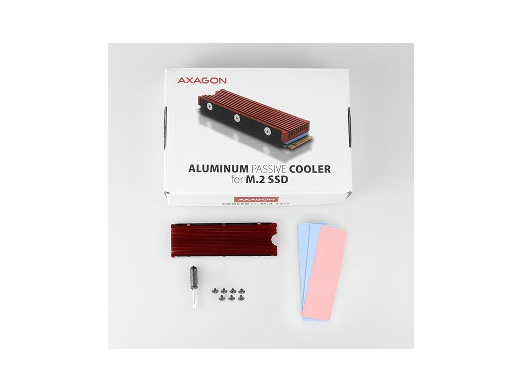Pasivní hliníkový chladič AXAGON CLR-M2 ALU je ideální pro chlazení výkonných M.2 SSD disků, zejména NVMe. Univerzální heatsink lze použít na M.2 karty o rozměru 22 x 80 mm. Dodávané teplovodivé podložky, umožní montáž chladiče pro všechny jednostranné i oboustranné M.2 SSD disky.