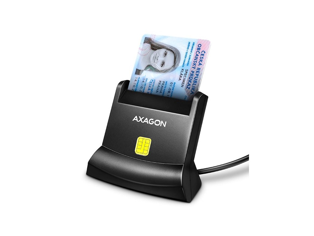 Univerzální stolní čtečka Smart card / ID card AXAGON CRE-SM4N StandReader s USB 2.0 rozhraním. Card reader podporuje všechny běžné formáty kontaktních Smart karet, čipových karet a dalších karet včetně kontaktních bankovních platebních karet nebo kontaktních elektronických občanských průkazů *. Čtečka je plně kompatibilní s aplikací eObčanka.