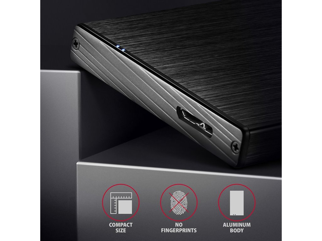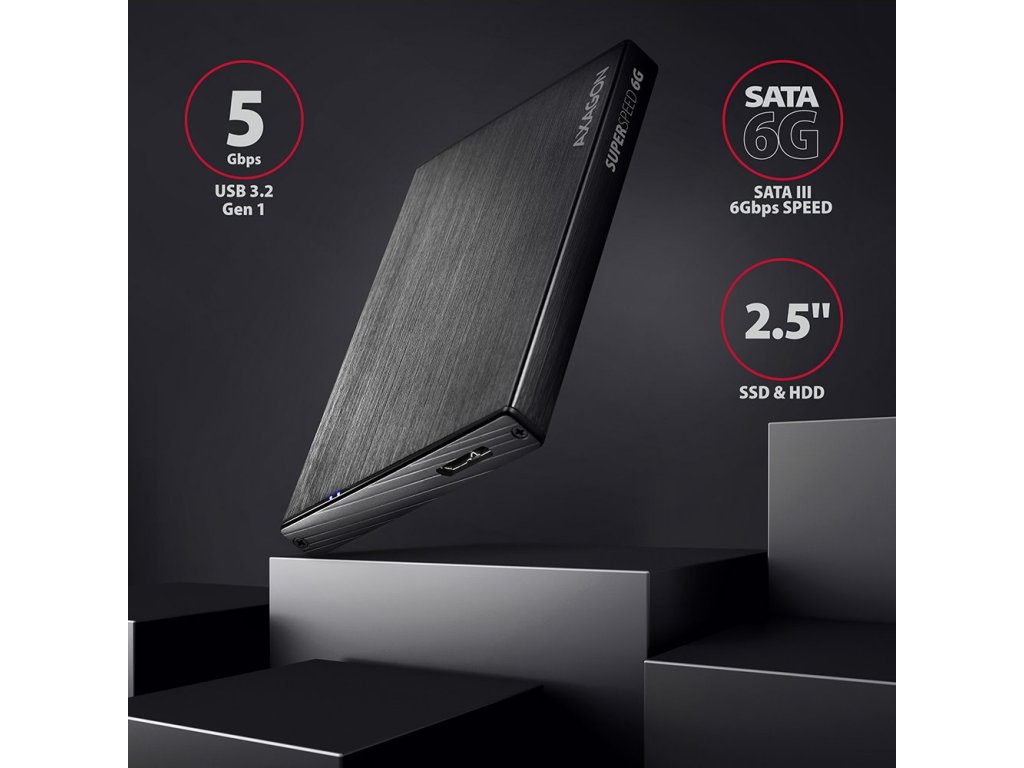 Kompaktní hliníkový externí box AXAGON EE25-XA6 ALINEbox s USB 3.2 Gen 1 (USB 3.0) rozhraním určený pro 2.5" SATA pevné disky nebo SSD.