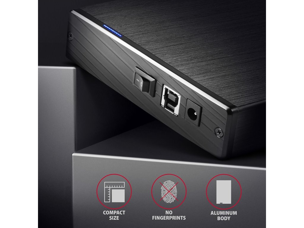 Odolný odlitek hliníkové skříně pro dokonalou mechanickou ochranu disku a výborný odvod tepla.