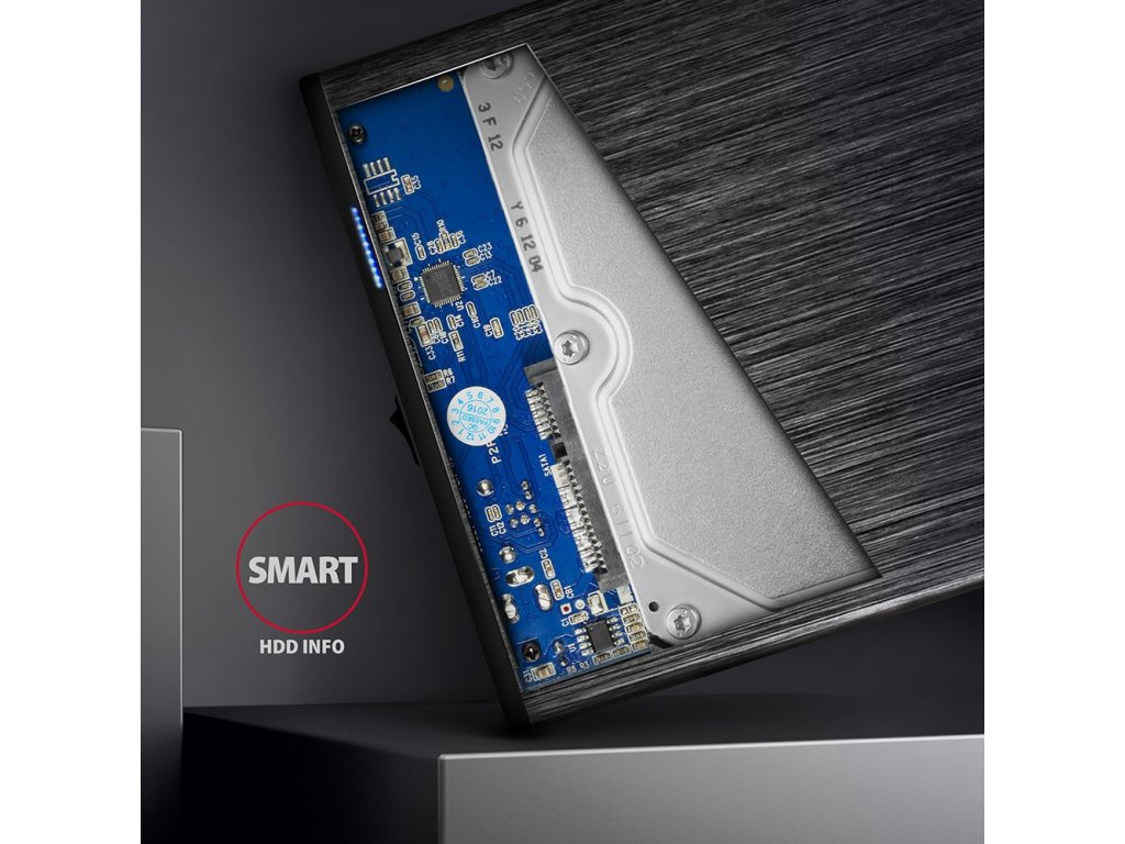 Podpora UASP dovolí užívat si nejvyšší možnou rychlost pevných disků. Čtení S.M.A.R.T. informací monitorujících kondici externího disku. Podpora uspávání připojeného disku i boxu.