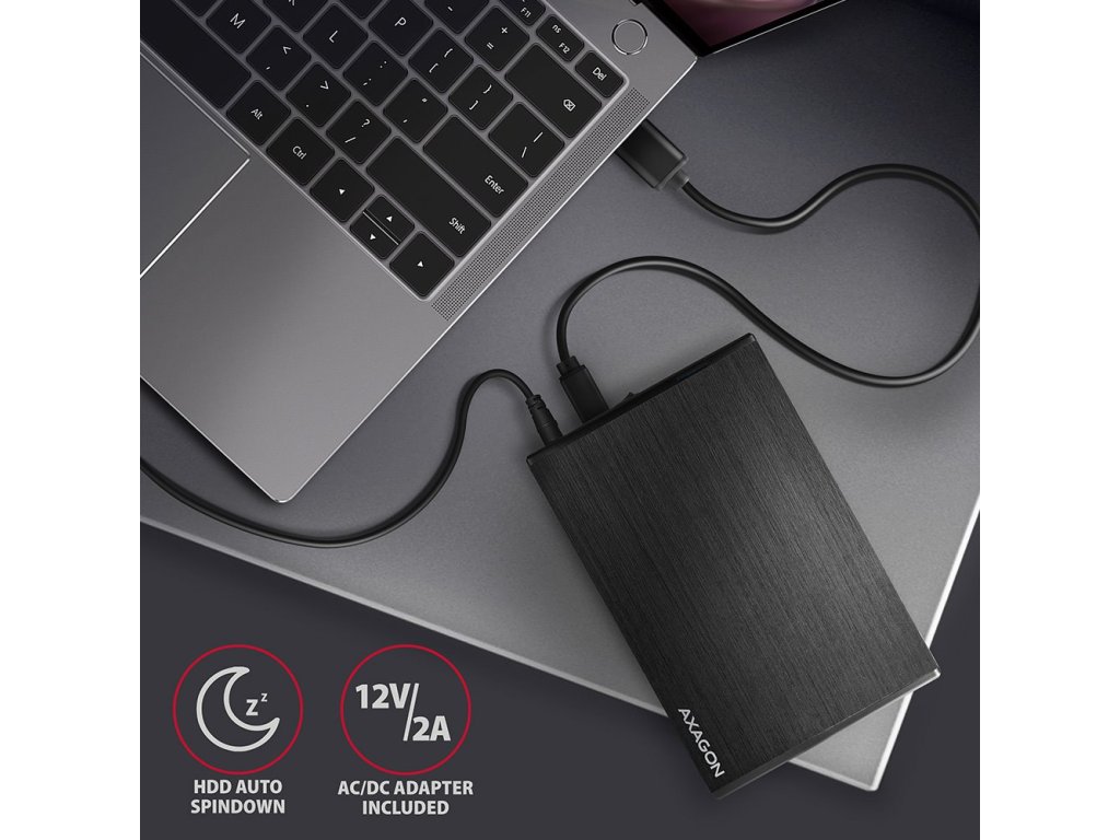 Kompaktní hliníkový externí box AXAGON EE35-XA3 ALINEbox s vysokorychlostním USB 3.2 Gen 1 (USB 3.0) rozhraním určený pro 3.5" SATA disky.