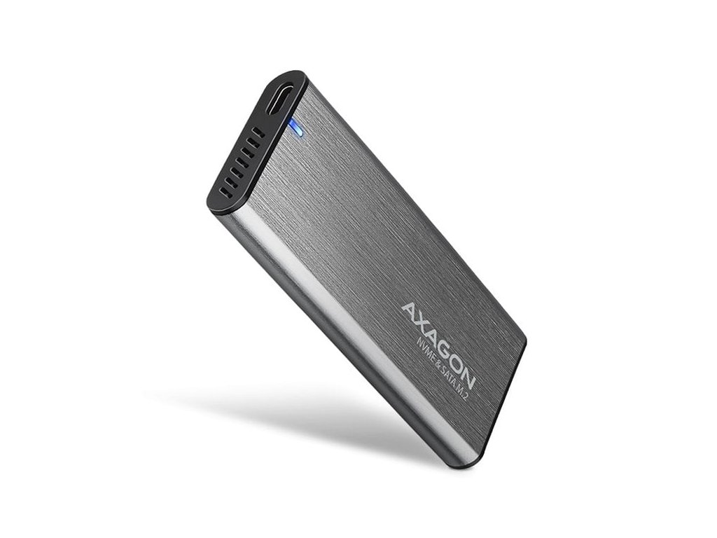 AXAGON EEM2-SG2, USB-C 3.2 Gen 2 - M.2 NVMe & SATA SSD kovový RAW box, bezšroubkový, stříbrný
