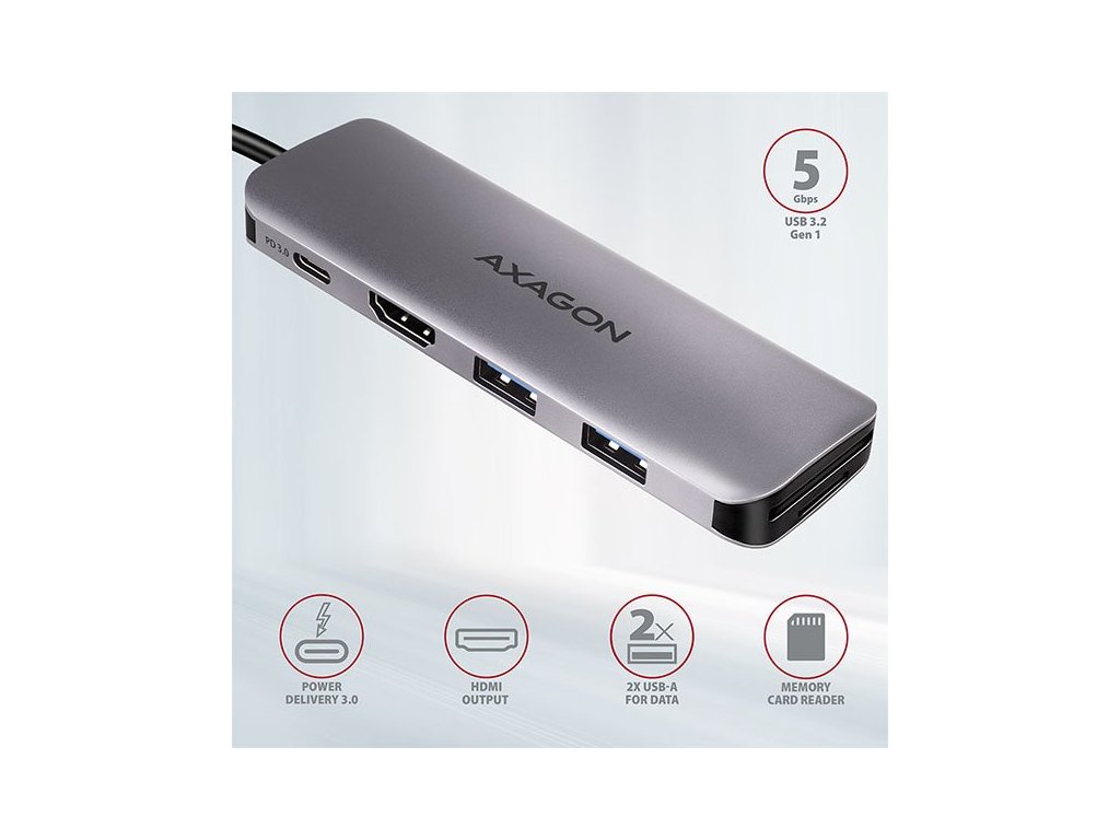 AXAGON HMC-5, USB 3.2 Gen 1 hub, 2x USB-A, HDMI