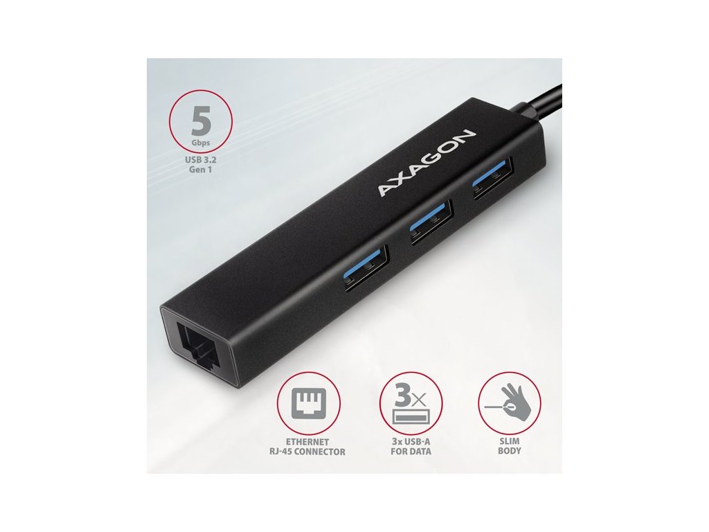 AXAGON HMC-GL3A, USB 3.2 Gen 1 hub + Gb LAN