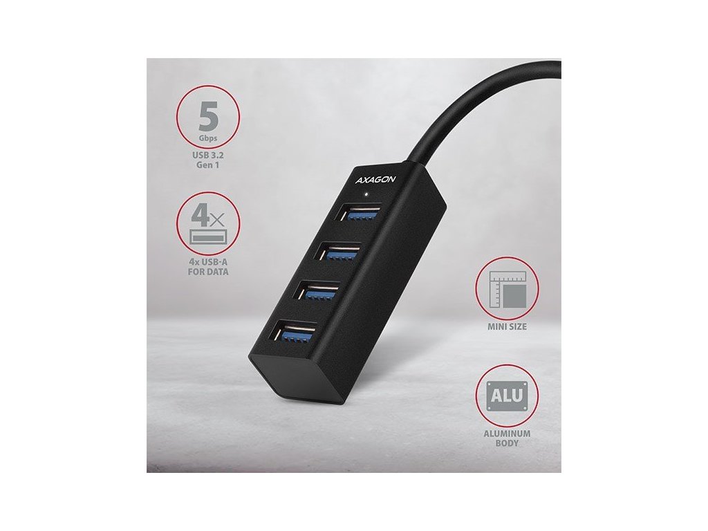 AXAGON HUE-M1A, 4x USB 3.2 Gen 1 MINI hub, kovový