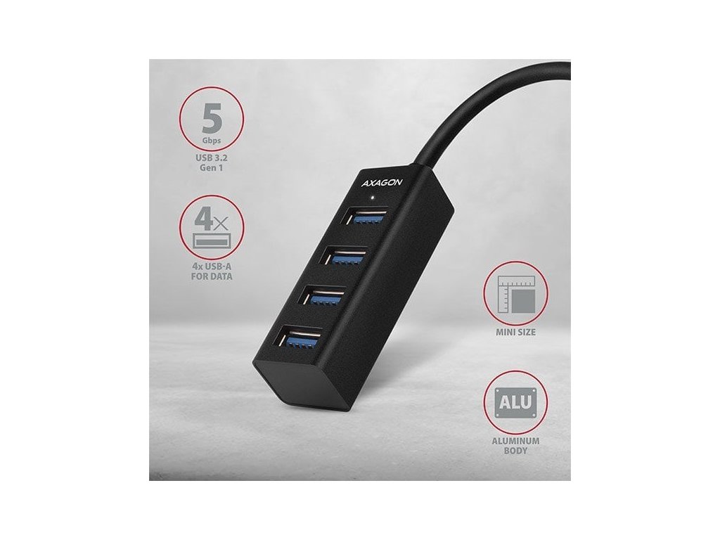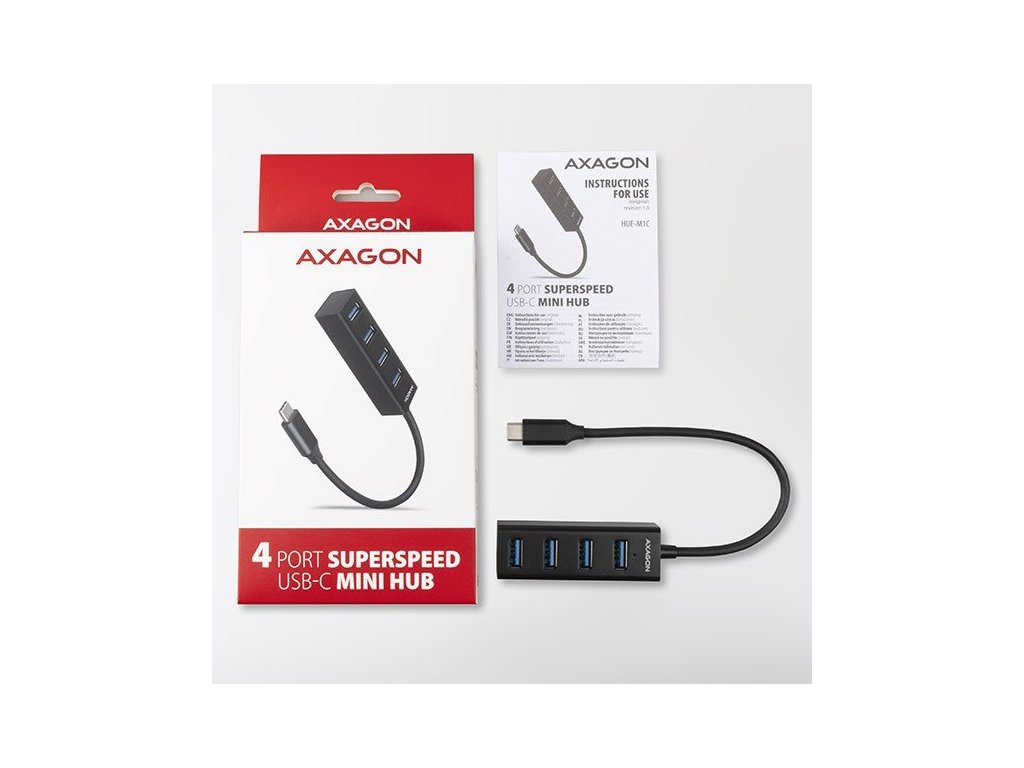 AXAGON HUE-M1C, 4x USB 3.2 Gen 1 MINI hub, kovový, kabel USB-C 20cm