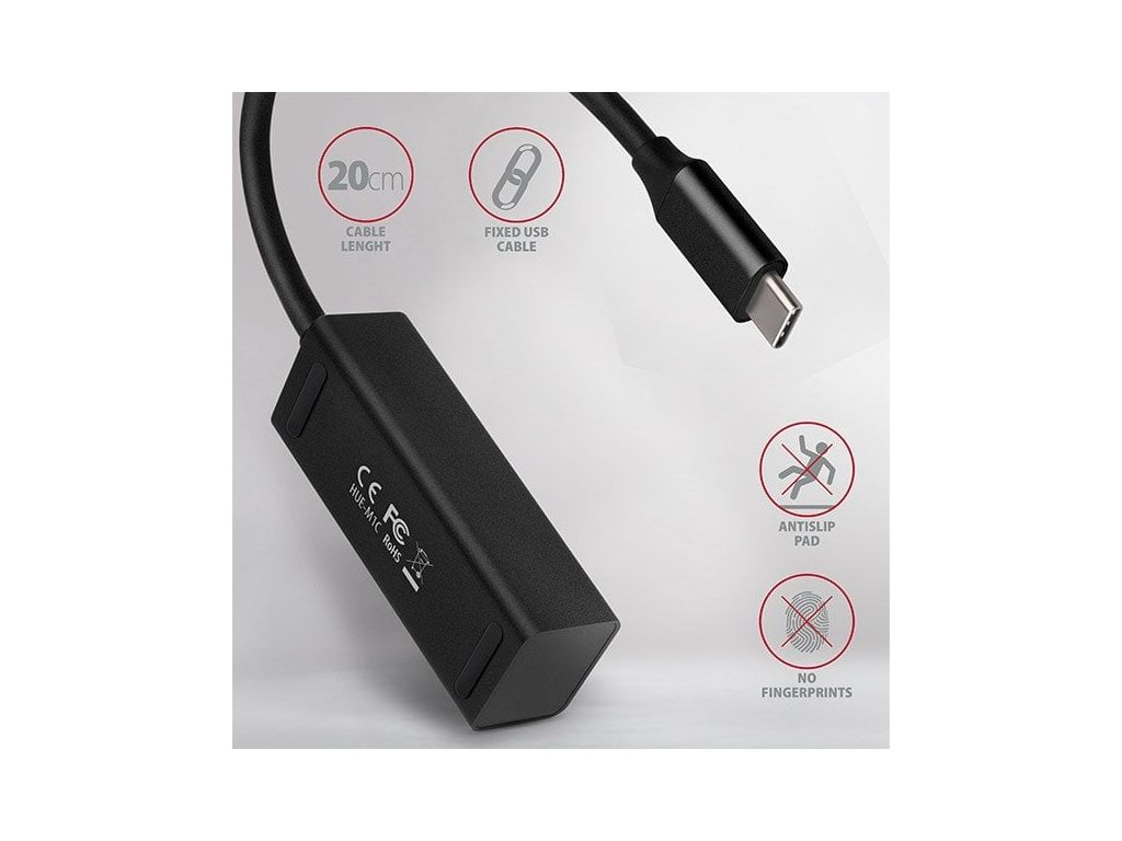• SuperSpeed USB-C rozbočovač s kabelem napevno délky 20 cm,
