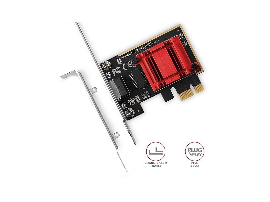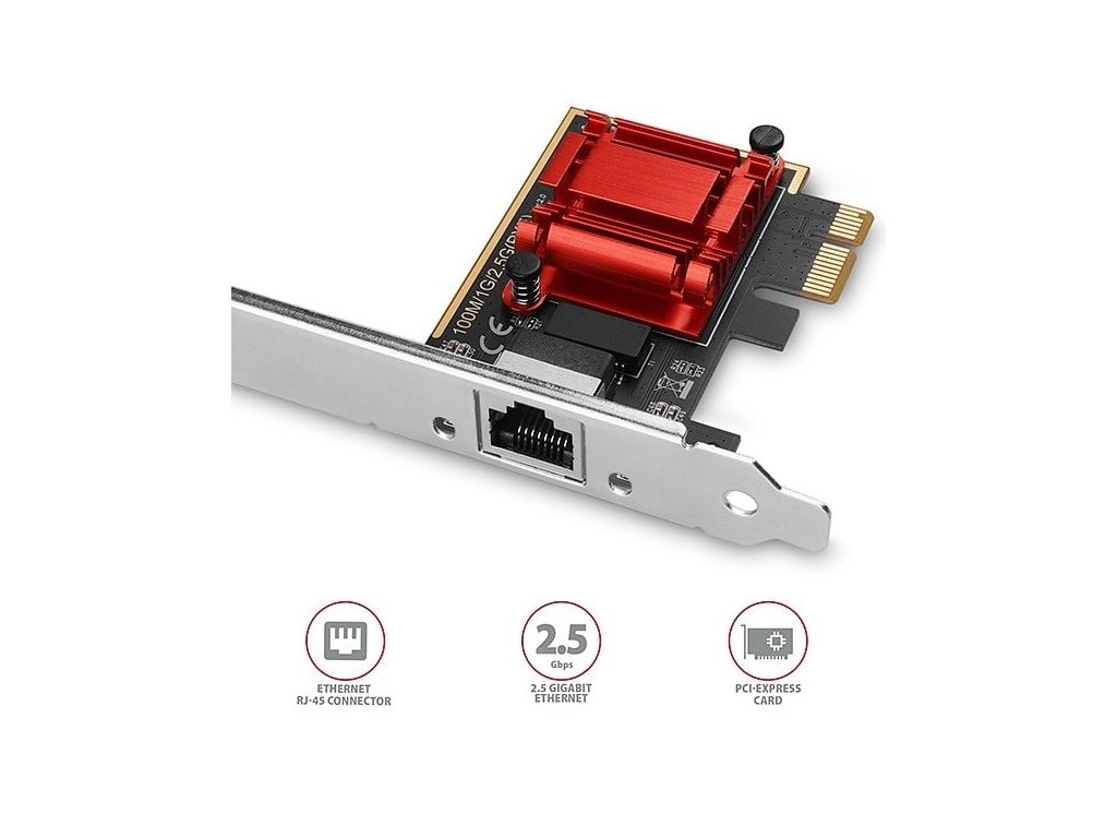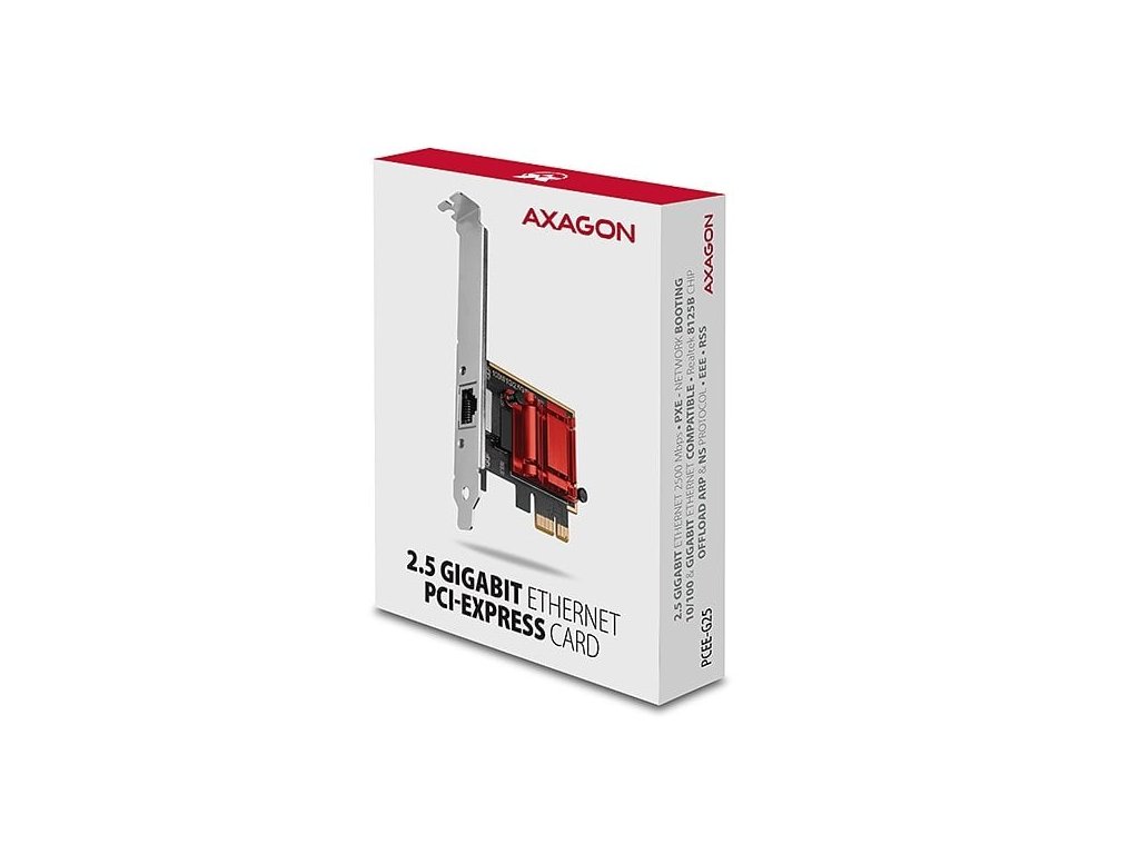 PCI-Express síťová karta AXAGON PCEE-G25 rozšíří stolní počítač o vysokorychlostní 2.5 Gigabit Ethernet připojení. Zpětně kompatibilní s Gigabit a 10/100Base-T sítěmi.