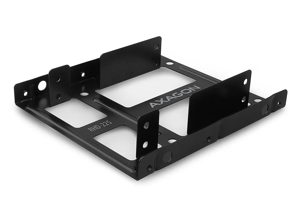 Kovový rámeček AXAGON RHD-225 umožňuje montáž dvou 2.5" HDD nebo SSD disků do 3.5" pozice PC skříně.