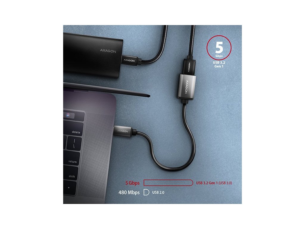 Kabelová redukce USB-C <-> USB-A AXAGON RUCM-AFAC připojí stávající zařízení s USB-A konektorem k novému zařízení s moderním USB-C rozhraním. Redukce je navržena pro rychlé připojení USB hubu nebo externího disku k notebookům vybaveným pouze USB-C konektory. Výborně poslouží také pro připojení flash disku k mobilnímu telefonu s USB-C konektorem. Podporuje přenos dat rychlostí až 5 Gb/s a napájení proudem až 3A.