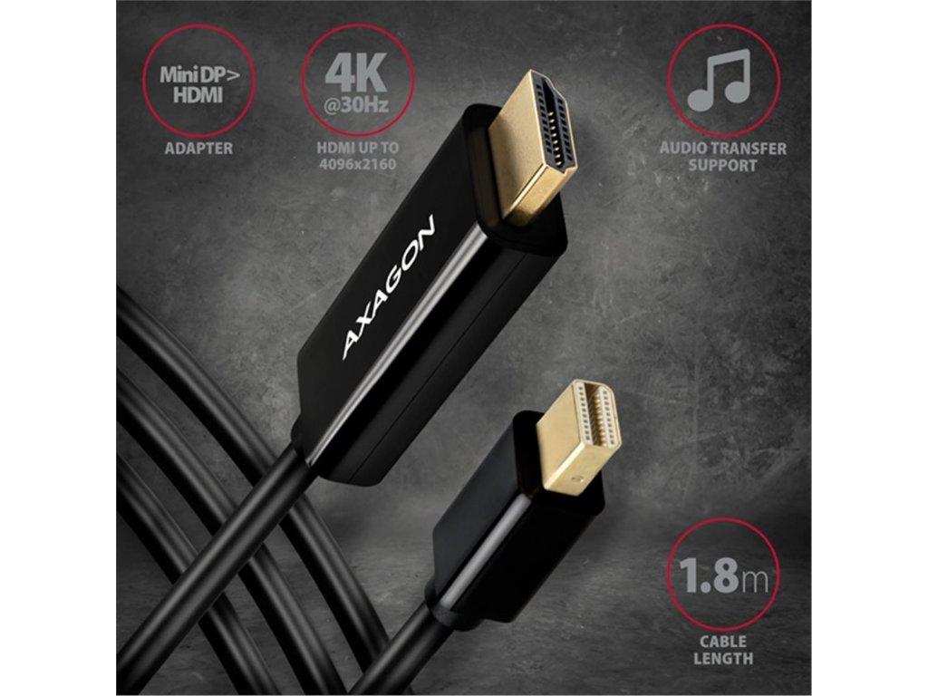 AXAGON RVDM-HI14C2, miniDisplayPort -> HDMI 1.4 redukce / kabel 1,8m