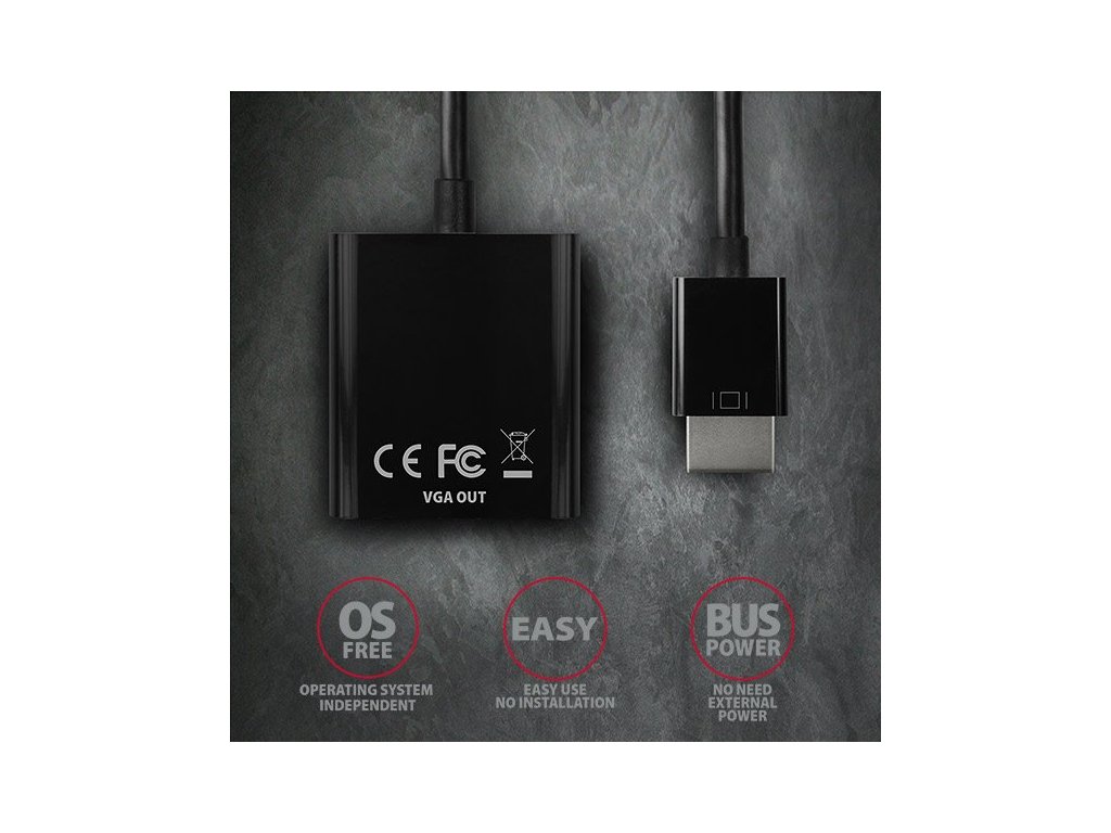 aktivní adaptér pro připojení staršího VGA monitoru/TV/dataprojektoru k počítači nebo jinému zařízení s výstupem HDMI.