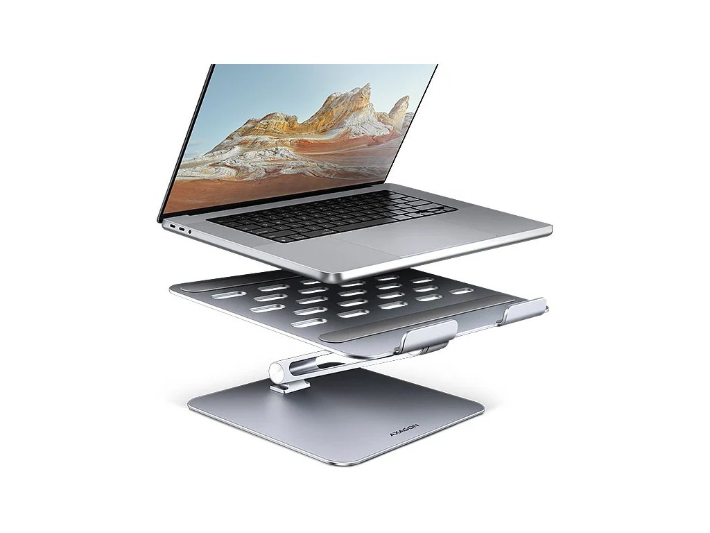 AXAGON STND-LQ, hliníkový HQ stojan pro notebooky 10"-17.3", nastavitelná výška a úhel, šedý