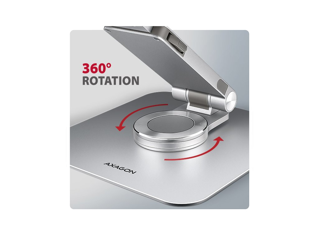 AXAGON STND-LR, hliníkový stojan pro notebooky 10"-17.3" s nastavitelnou výškou, úhlem a 360° rotací, šedý