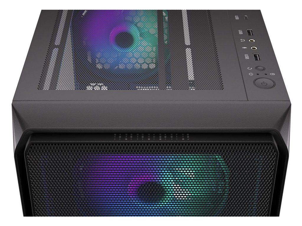 Skříň: Endorfy Arx 500 ARGB - Prostorná skříň s mesh panelem a 4x 140mm ARGB ventilátory, zajišťuje vynikající proudění vzduchu a efektivní chlazení komponent.