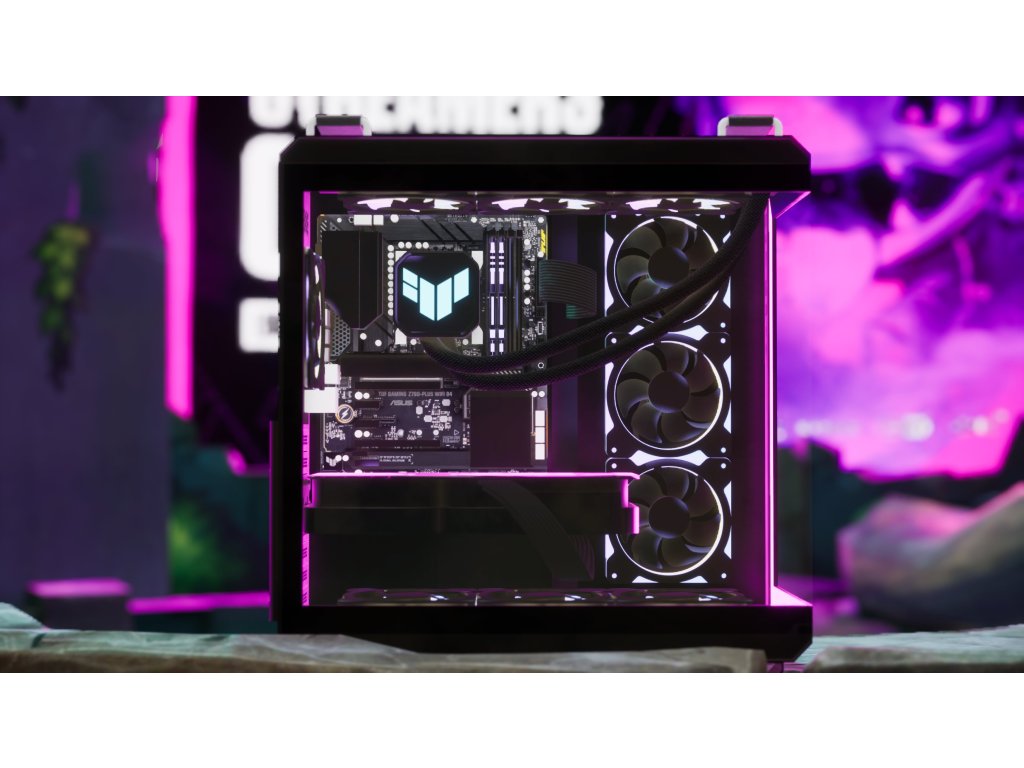 Celá sestava je uložena v luxusní skříni ASUS TUF GT502 Horizon Black s temperovaným sklem, která nabízí vynikající airflow a prostor pro chladicí systém. Spolehlivé a účinné napájení dodává plně modulární zdroj ASUS Prime AP-850G 850W.