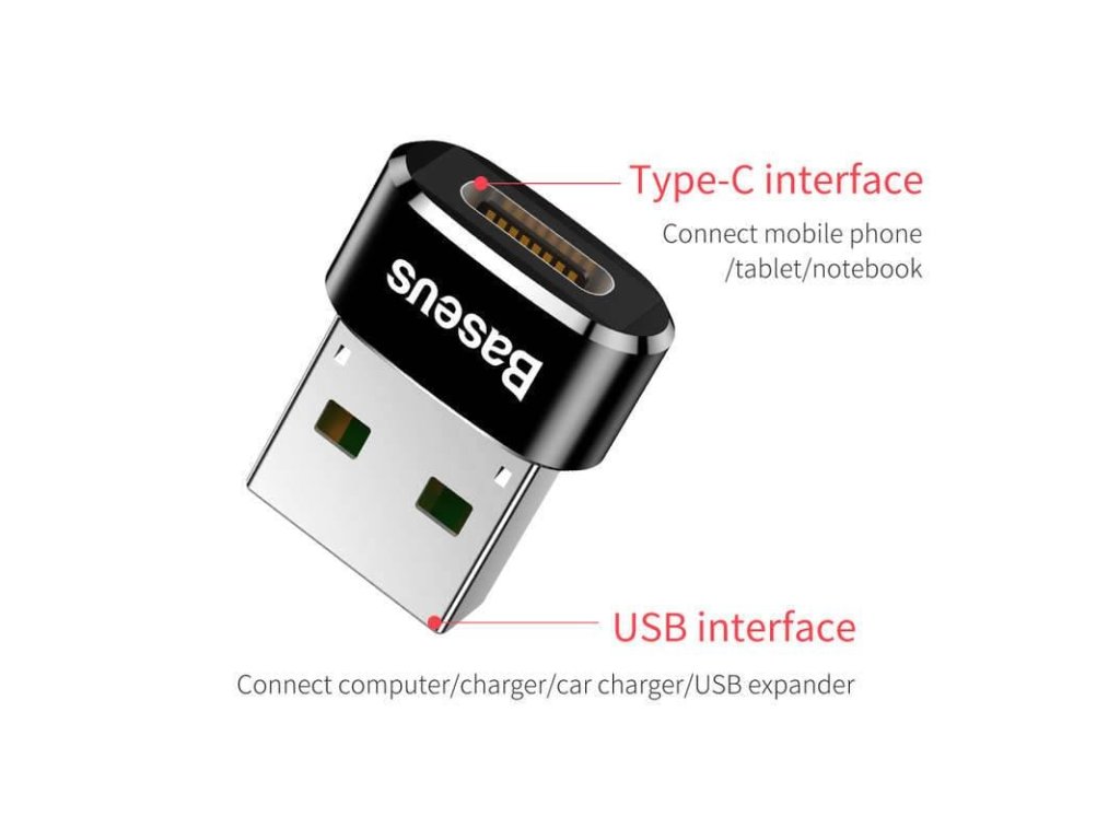 Baseus adaptér USB samec na USB-C samice 3A, černá