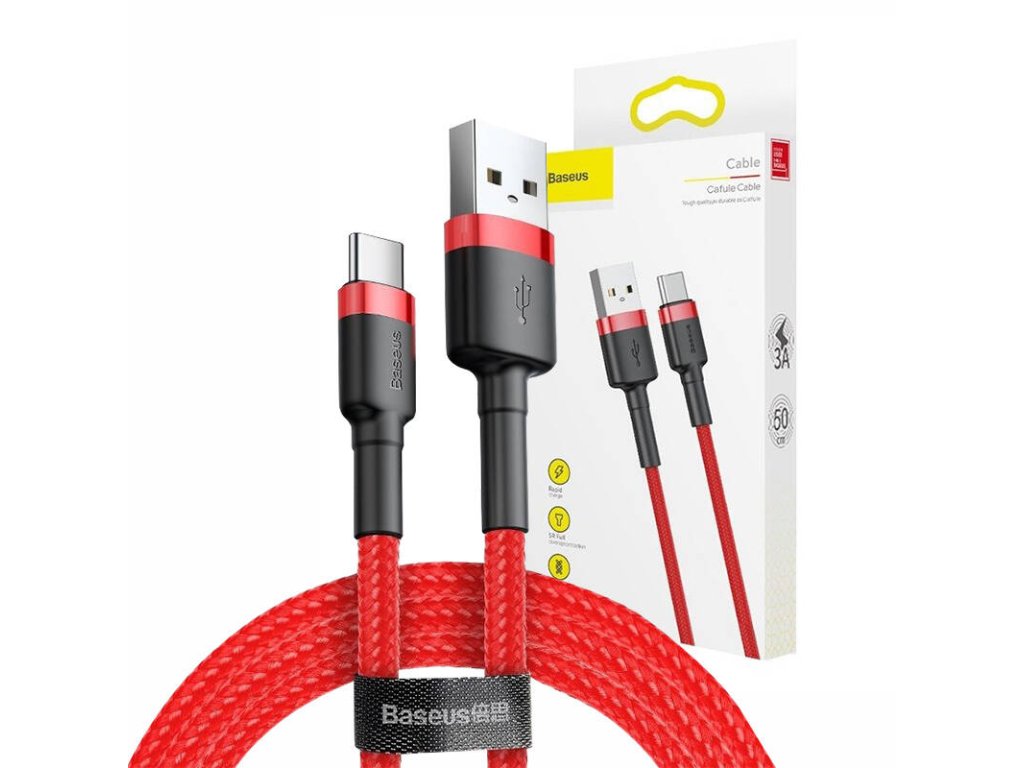 Baseus Cafule je vysoce kvalitní kabel USB - USB typu C, určený pro přenos dat a nabíjení zařízení. Díky zesílené konstrukci má zvýšenou odolnost proti přetržení (dodatečná ochrana na kabelu u zástrčky a silnější opletení dostupné pouze ve verzi Cafule).
