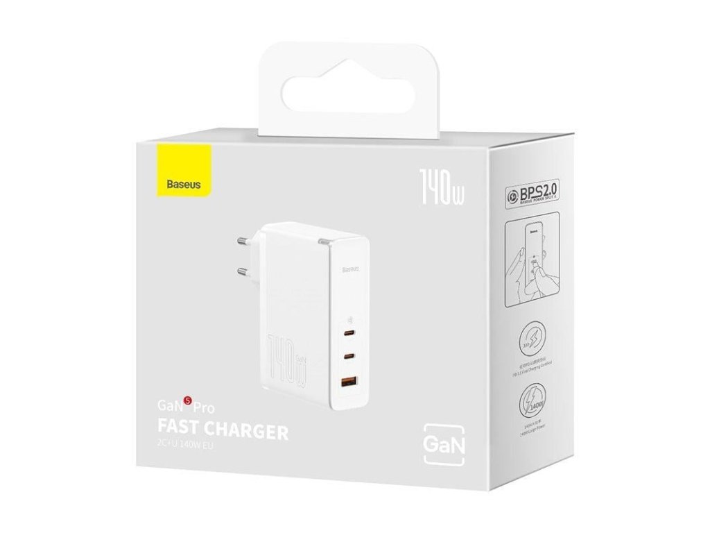Baseus GaN5 Pro rychlonabíjecí adaptér 2x USB-C + USB-A 140W bílá