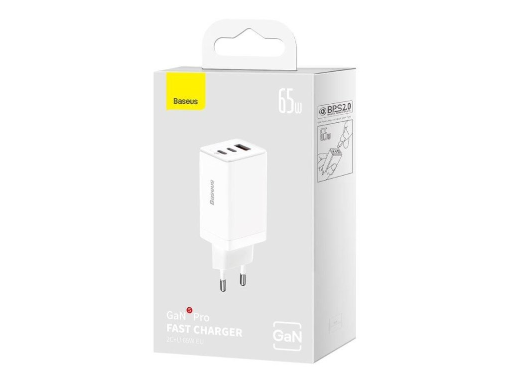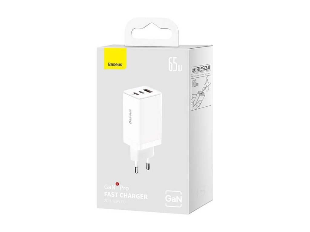Baseus GaN5 Pro rychlonabíjecí adaptér 2x USB-C + USB-A 65W bílá