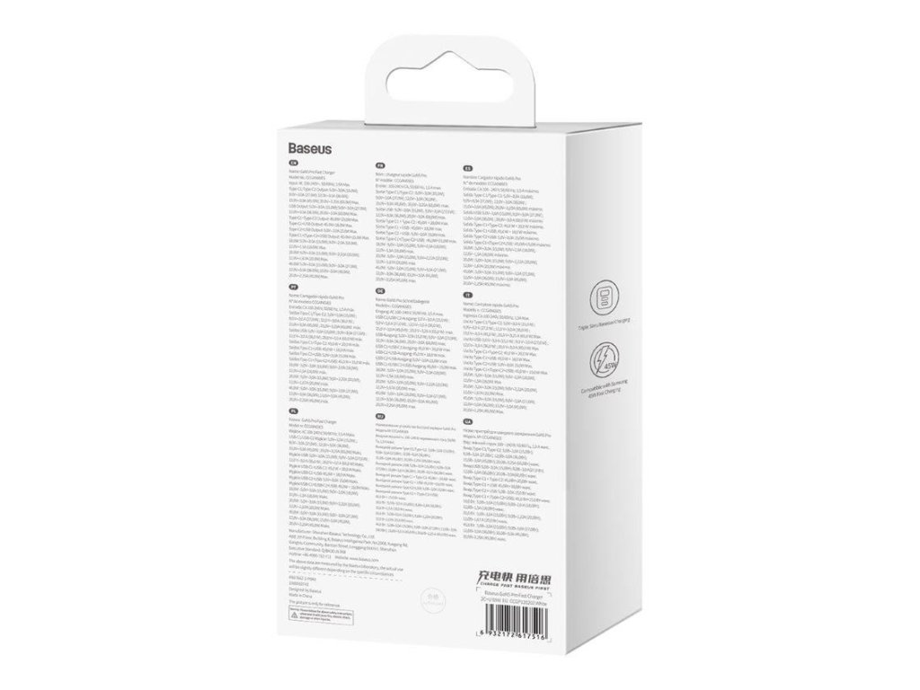 Vylepšená technologie GaN5 zvyšuje rychlost nabíjení vašich zařízení až o 16,67 %! Produkt Baseus podporuje protokoly rychlého nabíjení PD3.0, QC3.0, SCP, AFC a PPS. Se síťovou nabíječkou Baseus GaN5 Pro nabijete baterii svého zařízení Apple za 30 minut ze 14 na 50 %. Stejná doba stačí k tomu, aby úroveň nabití baterie vašeho AppleBooku Air dosáhla 39 %. Nabíječka podporuje také technologii rychlého nabíjení Samsung (45 W). Můžete nabíjet až 3 zařízení současně a o inteligentní rozdělení energie mezi nabíjená zařízení a jejich bezpečnost se stará technologie BPS II.