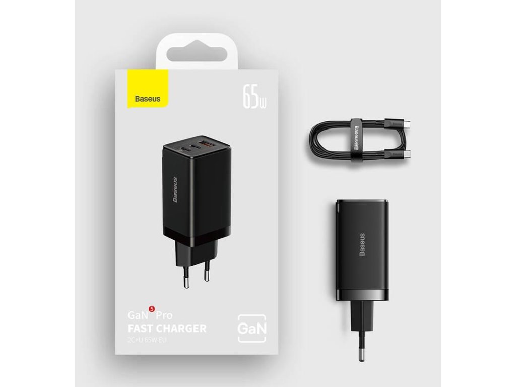 Název: Baseus GaN5 Pro Fast Charger 2C+U 65W EU Black(Include:Baseus Xiaobai series fast charging Cable Type-C to Type-C 100W(20V/5A) 1m Black