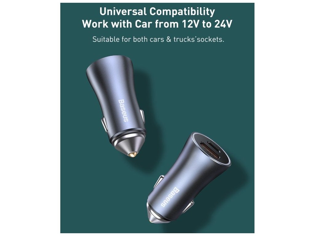 Baseus Golden Contactor duální adaptér do automobilu USB-A QC + USB-C 40W, šedá