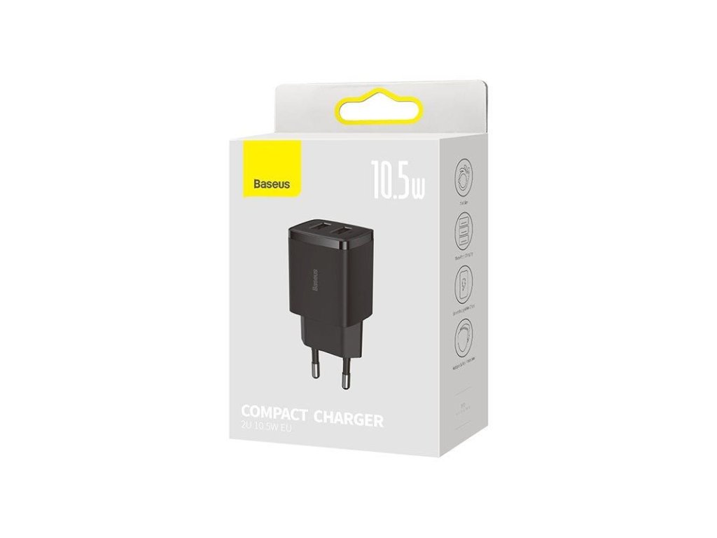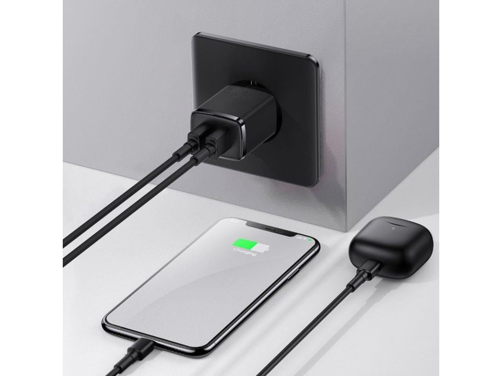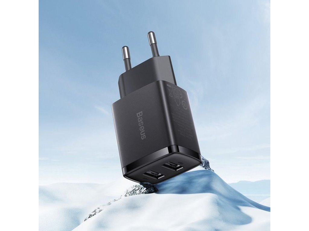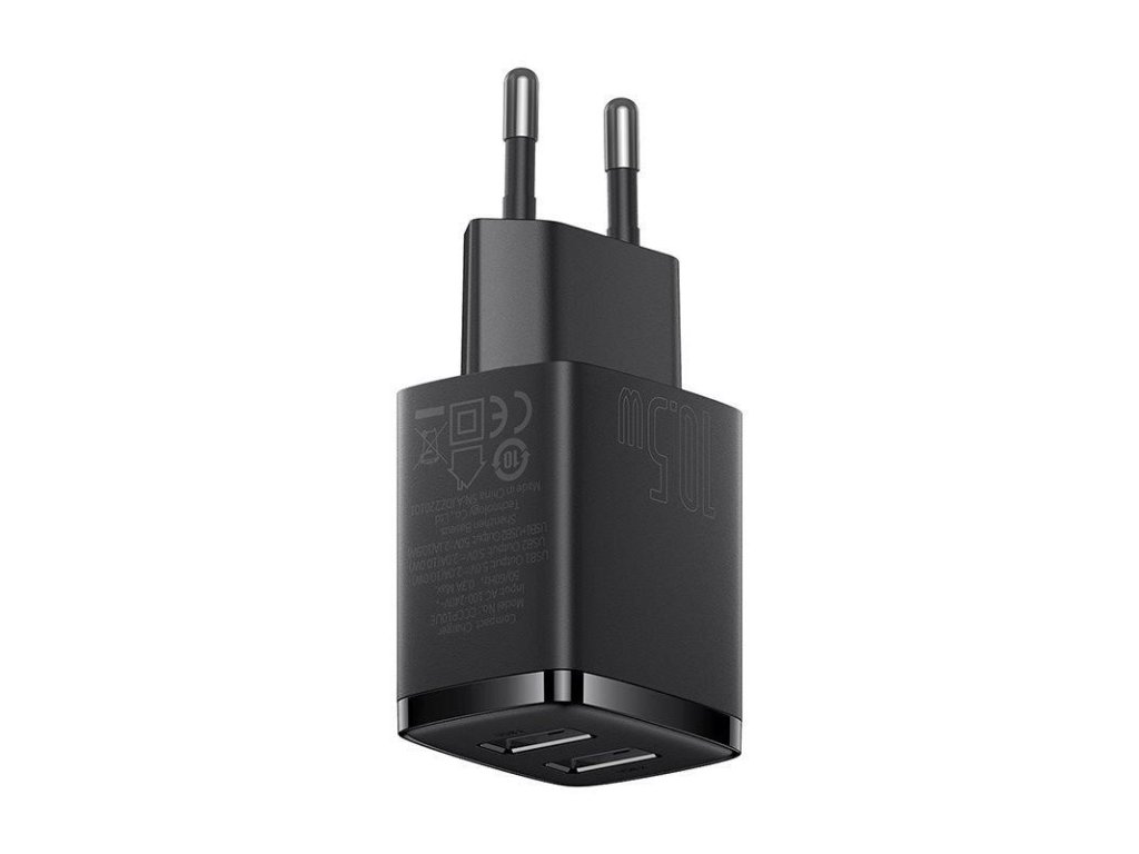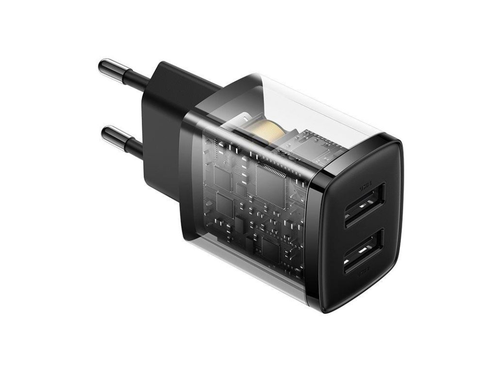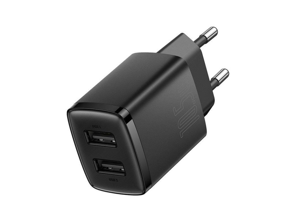 Napájecí nabíječka se dvěma porty USB-A. Navrženo tak, aby fungovalo s většinou populárních zařízení napájených přes USB, jako jsou iPhony a telefony se systémem Android.