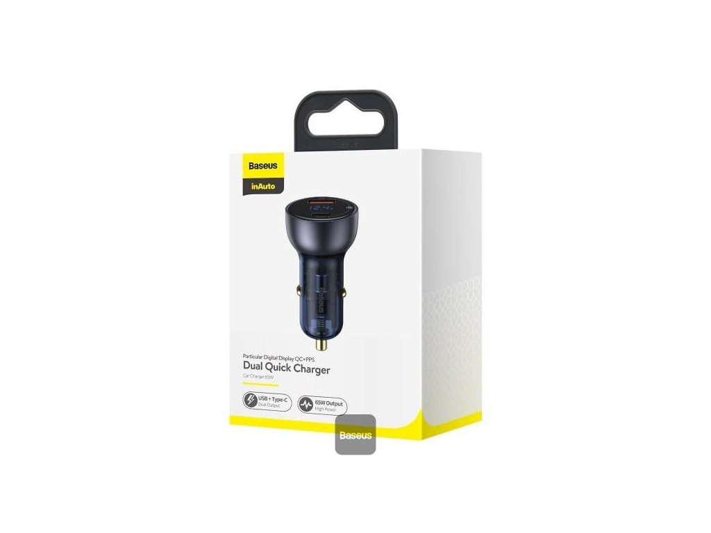 Baseus Particular Digital Display duální nabíječka do automobilu USB-A QC + USB-C 65W, šedá