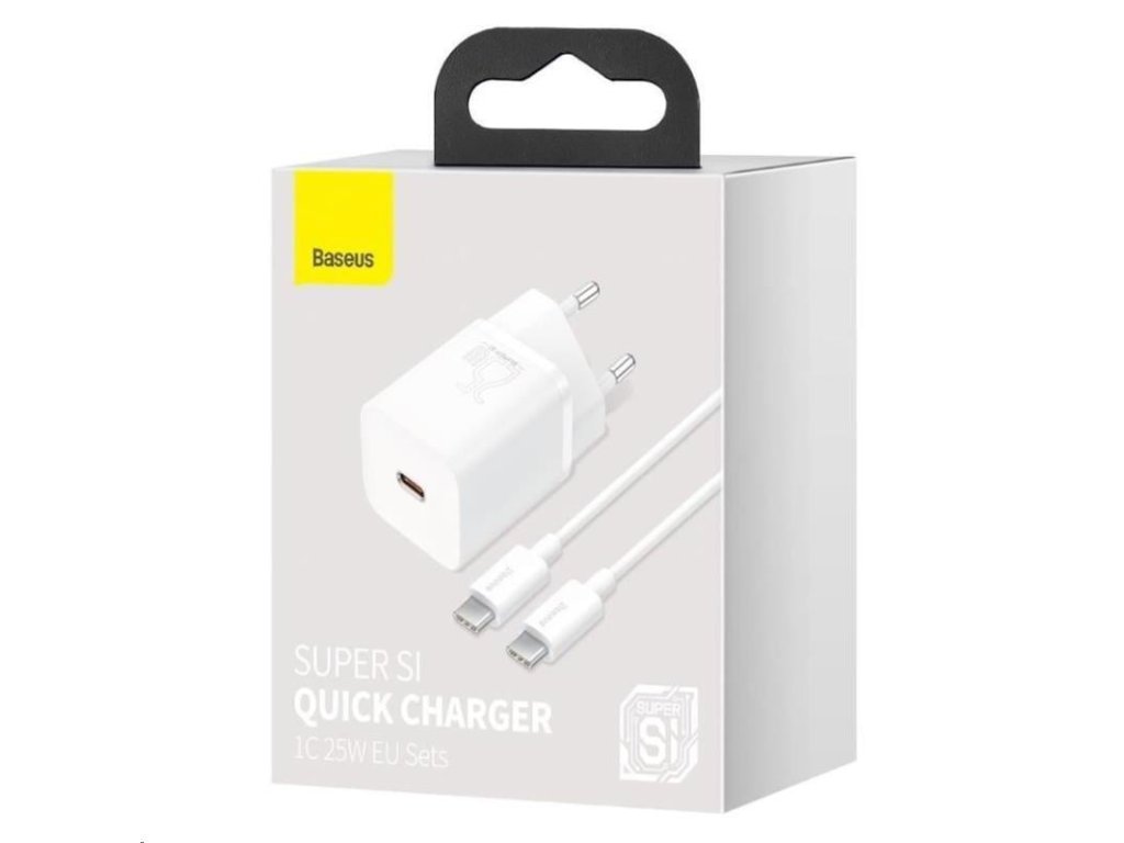 Baseus Super Si rychlonabíječka 1C 25W EU + kabel USB-C/USB-C 3A 1m bílá