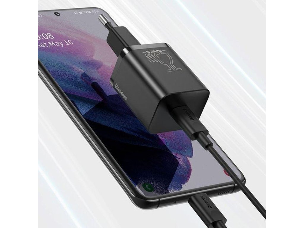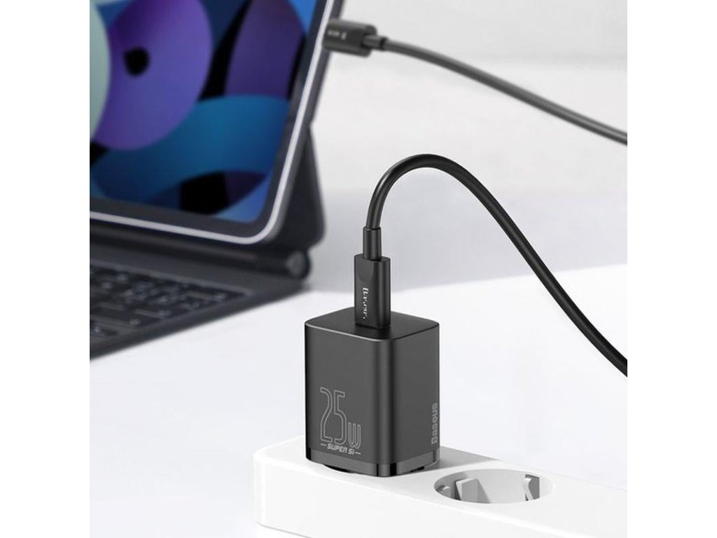 Baseus Super Si rychlonabíječka 1C 25W EU + kabel USB-C/USB-C 3A 1m černá