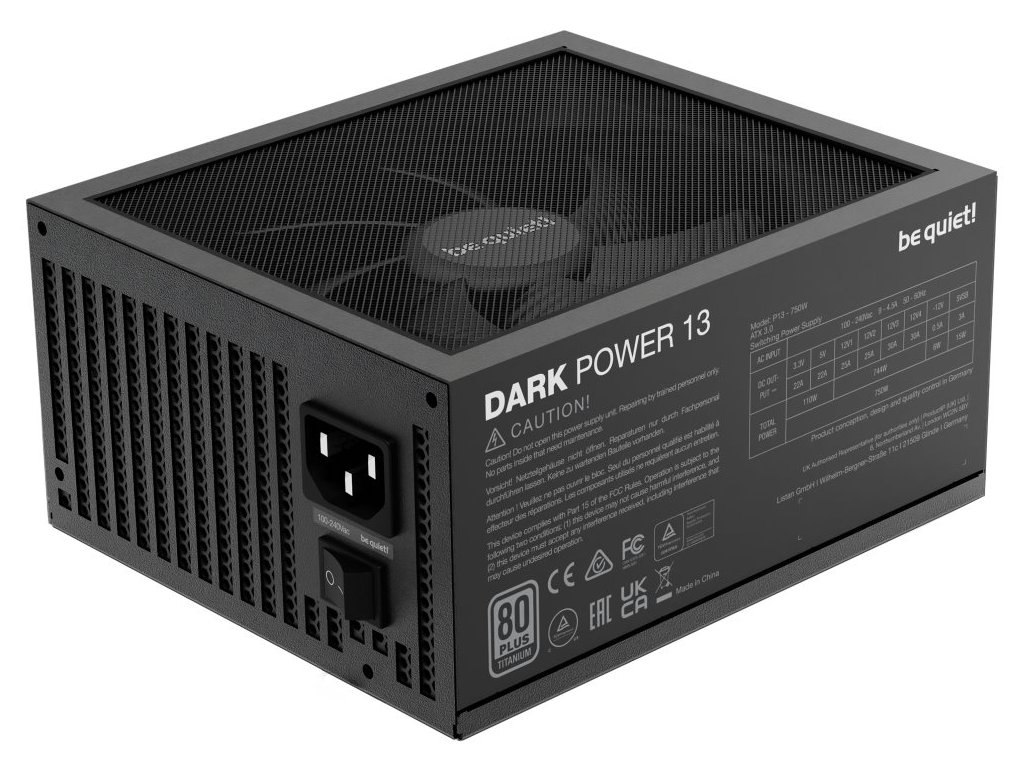 Napájecí zdroj o výkonu 750 W je osazen tichým a přitom výkonným 135 mm ventilátorem. Zdroj splňuje certifikaci 80PLUS Titanium a má plně odpojitelné kabely.