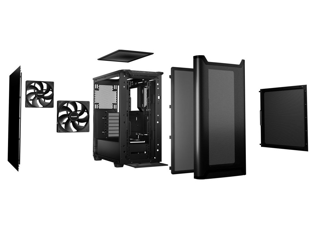 Skříň formátu ATX nabízí dvě 3,5" pozice pro pevné disky a pět 2,5" pozic pro SSD disky. Pro vylepšený průtok vzduchu je skříň vybavena perforovaným předním panelem a průduchem v horním krytu. Skříň je osazena dvěma ventilátory Pure Wings 3 o velikosti 140 mm. Důmyslné řešení umožňuje pohodlné umístění až 360 mm dlouhého výměníku vodního chlazení na přední straně. Ve skříni je dostatek prostoru pro chladič CPU do výšky až 178 mm a grafickou kartu o délce až 368 mm. Na vrchní straně se nalézá dvojice USB 3.0 portů, jeden USB-C port a jack konektor pro sluchátka a mikrofon. Skříň je dodávána bez zdroje.