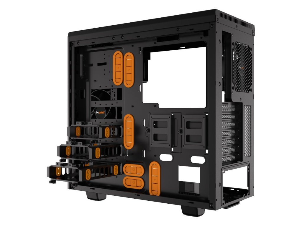Kvalitní a tichá skříň výrobce Be quiet! zaujme celoprůhlednou bočnicí z tvrzeného skla a decentním designem. Díky vysokému stupni modularity vyhoví všem Vašim požadavkům. Lehce dostupnými se stanou dva USB 3.0 porty, port sluchátek a mikrofonu a třípolohový přepínač pro regulaci otáček. Pro optimální proudění vzduchu uvnitř skříně je dodávána s dvojicí ventilátorů instalovaných v přední a zadní části. Celkem je možné uložení až sedmi ventilátorů nebo až tří bloků vodního chlazení. Pro disky pak slouží tři 3,5" pozice nebo až osm 2,5" pozic. Své místo uvnitř skříně naleznou základní desky do formátu ATX. Skříň je dodávána bez zdroje.