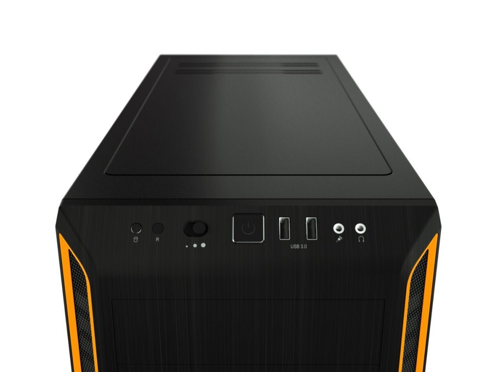 skříň počítačová, case, Midi ATX, bez zdroje, externí pozice 2x 5.25", interní 3x 3.5", 8x 2.5", 2x USB 3.0, audio výstup, vstup pro mikrofon, 1x přední 140mm a 1x zadní 120mm ventilátor, průhledná bočnice, černo-oranžová