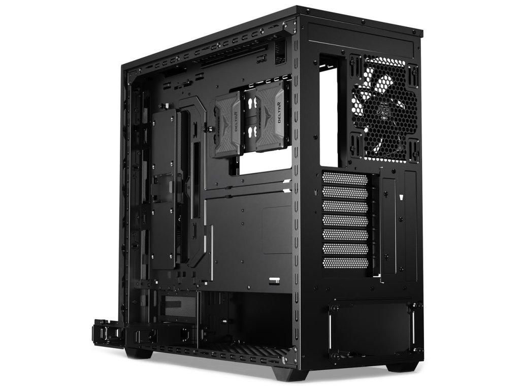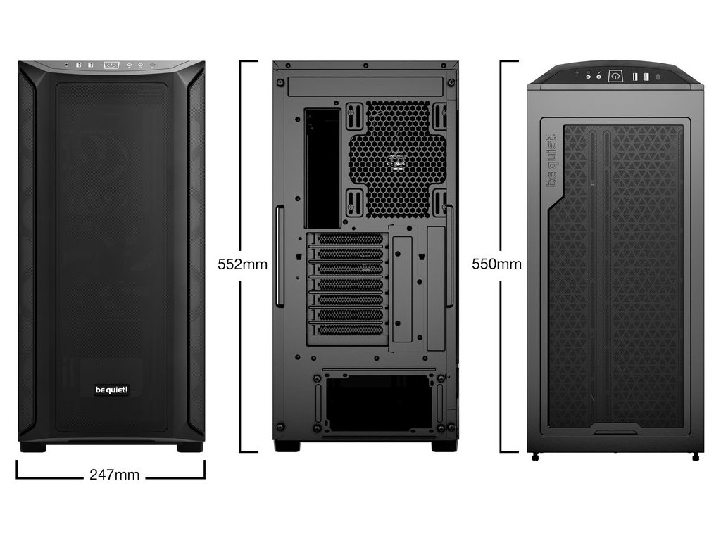 Skříň v provedení Middle Tower s průhlednou bočnicí nabízí dvě 3,5" pozice pro pevné disky a čtyři 2,5" pozice pro SSD disky. Na horním panelu naleznete dva porty USB 3.0, jeden port USB-C a dále také konektory pro sluchátka a mikrofon. Skříň je osazena třemi ventilátory o velikosti 140 mm, a to v přední, vrchní a zadní části, přesně tak, aby zaručily nejlepší průchod vzduchu. Ve skříni je dostatek prostoru pro chladič CPU do výšky až 180 mm a grafickou kartu o délce až 430 mm. Důmyslné řešení umožňuje pohodlné umístění až 420 mm dlouhého výměníku vodního chlazení na přední a vrchní straně. Potěší taktéž integrovaná lišta pro lepší organizaci kabelů a dvojice prachových filtrů. Skříň je dodávána bez zdroje.