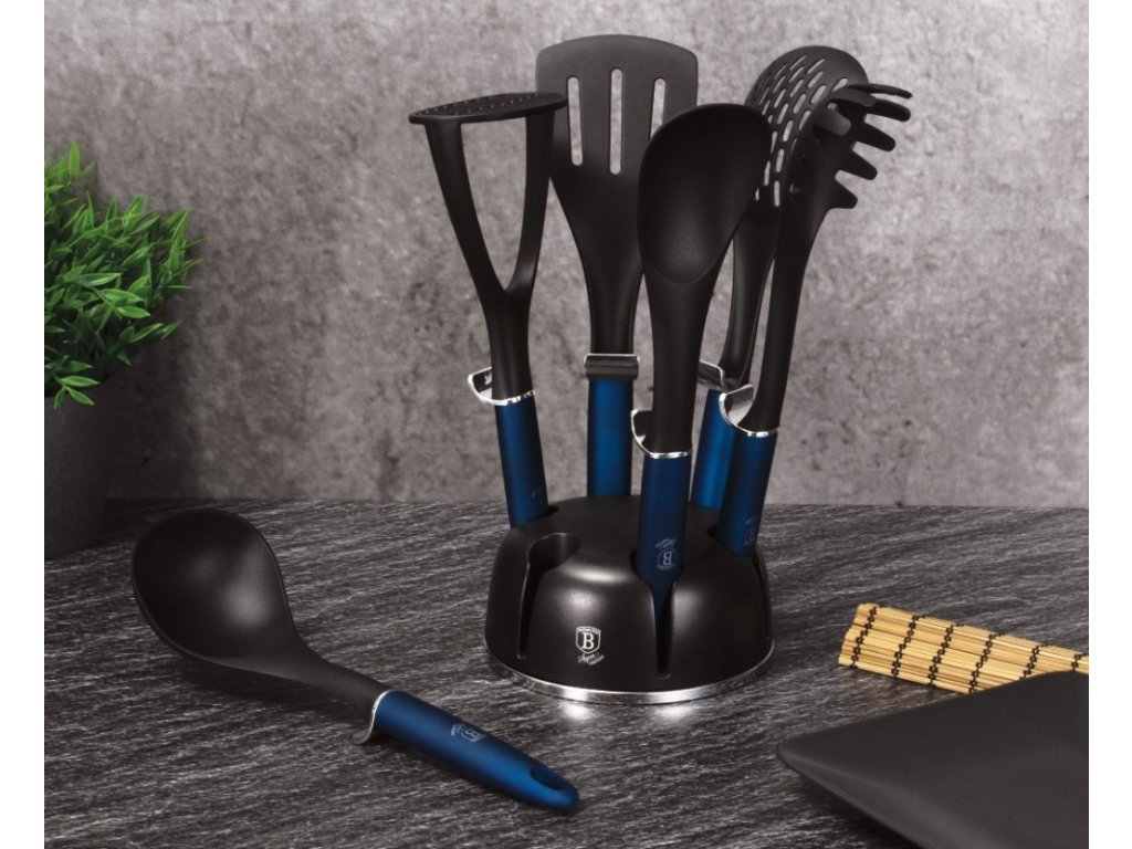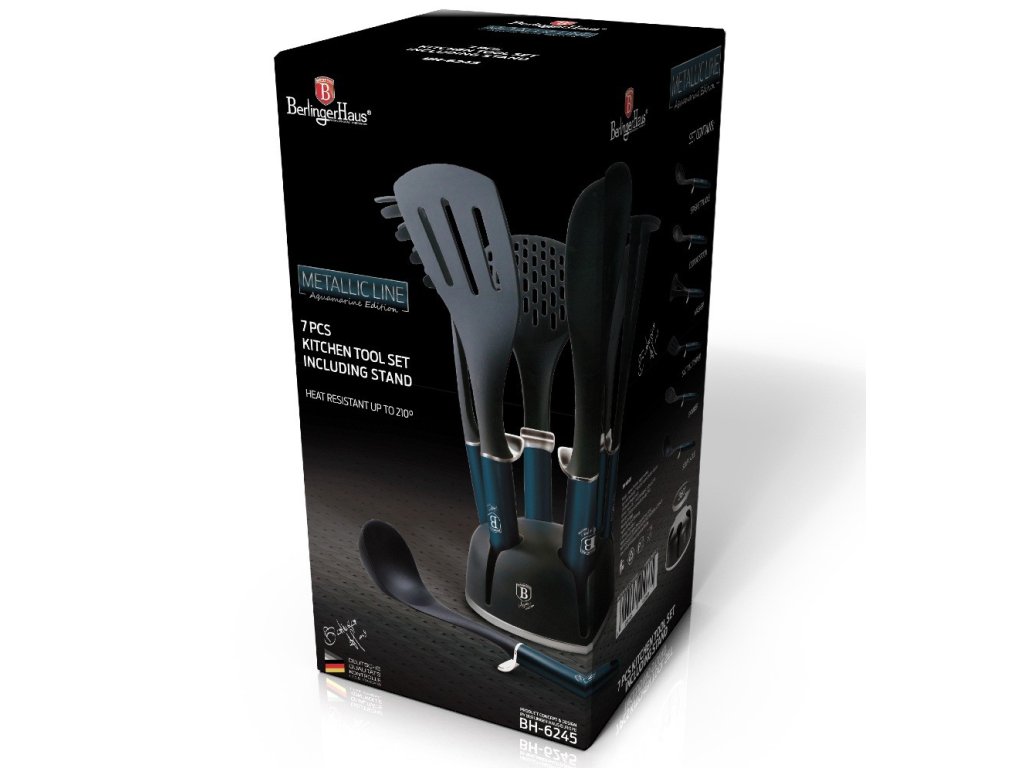 BerlingerHaus Kuchyňské náčiní ve stojanu Aquamarine Metallic Line, 7 ks