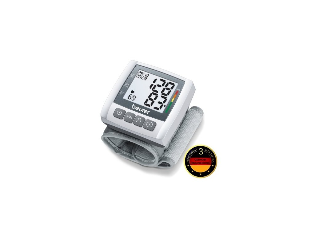 tlakoměr/pulsoměr na zápěstí, WHO klasifikace, detekte arytmie, 3x40 pamětí, na zápěstí 13,5 - 19,5 cm, signalizace chyby, čas a datum, čitelný LCD displej