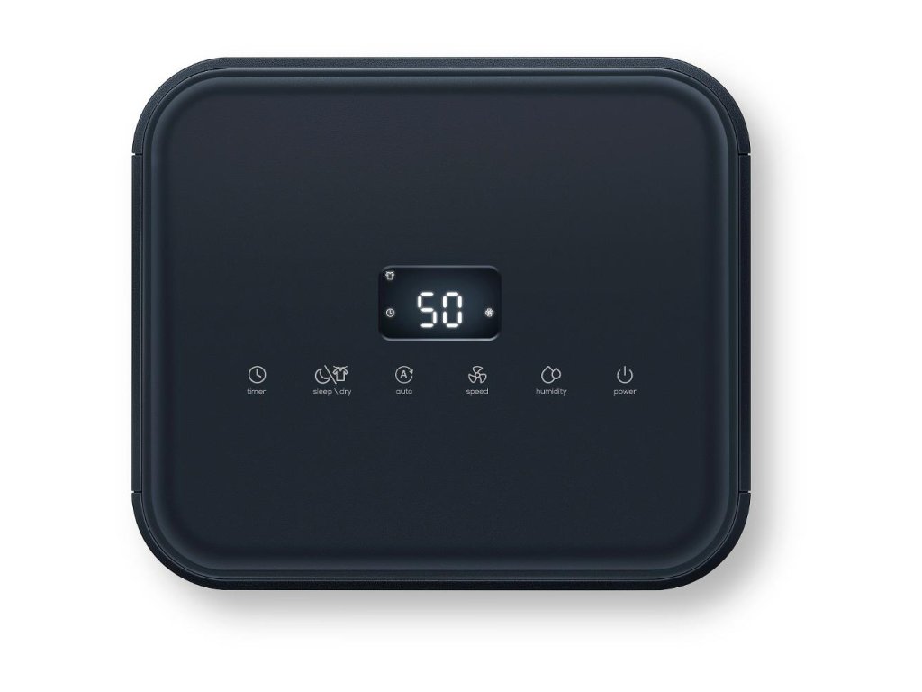 Beurer LE 150 má odnímatelnou nádrž o objemu 2 litry, možnost připojení k externímu odvodu kondenzátu a ochranu proti přetečení. Digitální displej s barevným zobrazením vlhkosti umožňuje snadné nastavení požadované vlhkosti v rozmezí 30–80 %. Automatický režim udržuje ideální hodnoty mezi 45–55 %.