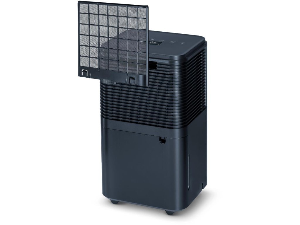 Odvlhčovač vzduchu - doporučená velikost místnosti 30 m2, odvlhčovací kapacita 12 l/den, objem nádoby 2 l, regulace výkonu, časovač, displej, automatické odvlhčování, systém „turbo“ pro sušení prádla a dotykový panel, hmotnost 10 kg