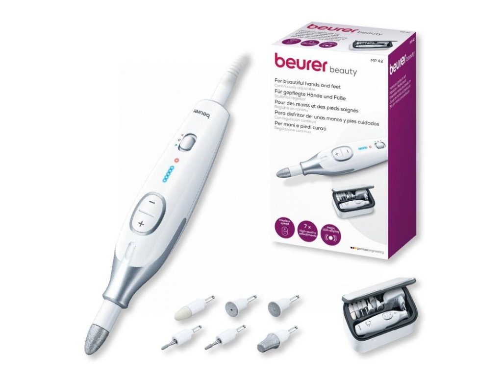 Beurer MP 42 - sada na manikúru / pedikúru, 2 rychlosti, chod doleva i doprava, 7 safírových nástavců