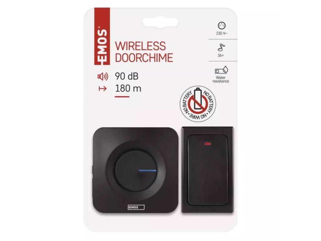 Bezdrátový zvonek s BEZBATERIOVÝM tlačítkem, vhodný do domu, bytu či kanceláře. Hlavní jednotka napájena 230 V AC, dosah tlačítka 180 m. Umožňuje přidání až 6 tlačítek. Má 36 melodií, hlasitost až 90 dB a optickou signalizaci.