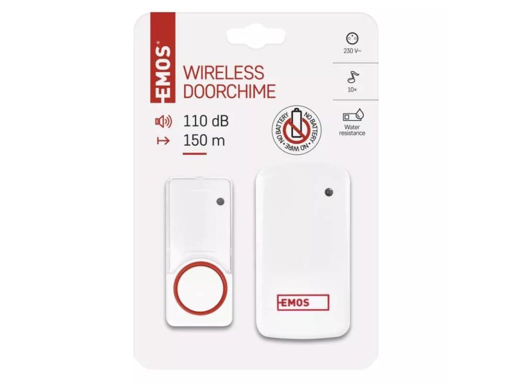 Spolehlivý bezdrátový zvonek s bezbateriovým tlačítkem, ideální pro dům, byt či kancelář. Napájení hlavní jednotky 230 V AC, dosah tlačítka 150 m. Maximální hlasitost 110 dB, 10 melodií, možnost přidání až 8 tlačítek. Voděodolnost IP44, barva červená.