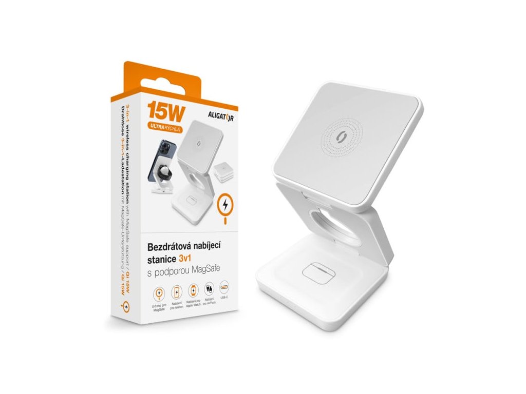 Bezdrátová nabíjecí stanice ALIGATOR 3v1 15W, bílá