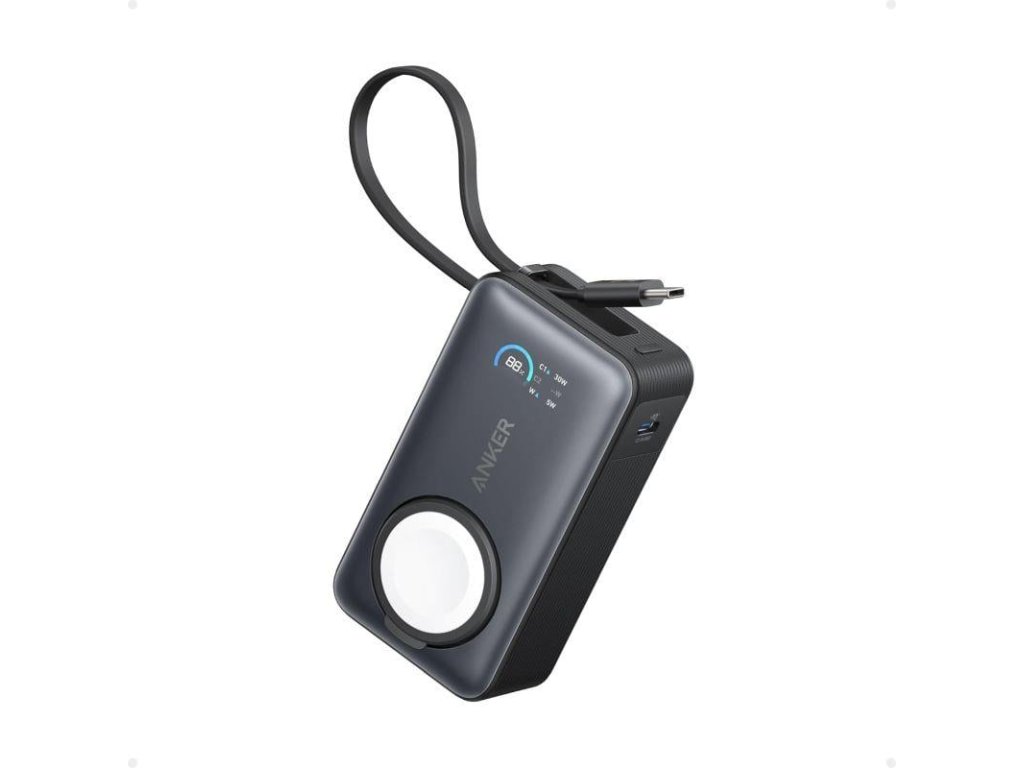 Bezdrátová powerbanka Anker MagGo,celková kapacita 10000mAh,kapacita baterie 5000mAh, celkový výkon 35W,30W USB-C a 5W nabíjení Apple Watch,vestavěný kabel USB-C,nabití powerbanky za 1,5hod,kompaktní rozměry 9,5 × 5,1 × 3,3 cm, barva černá