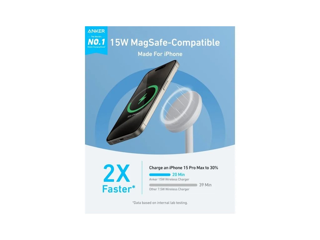 Dosáhněte bezkonkurenční účinnosti nabíjení s 15W. kompatibilní s MagSafe, která nabije iPhone 15 Pro na 30 % za pouhých 20 minut.